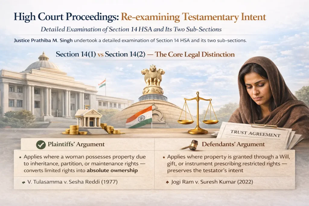 The defendants challenged the ruling under Article 227 of the Constitution. Justice Prathiba M. Singh undertook a detailed examination of Section 14 HSA and its two sub-sections.